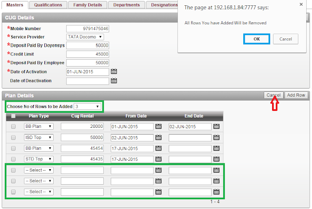 A good web design involves the better user interaction and the ability to fetch the data in a better way. In Tabular Form, the user can add rows only by clicking Add Row Button every time. Using this technique, the user can add multiple entries without clicking Add Row Button and submit them simultaneously.