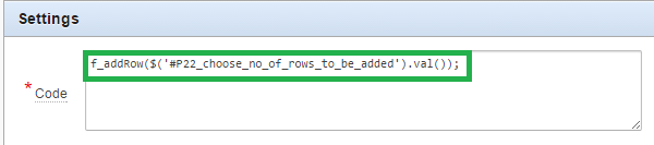 Step 5 : Call the function f_addRow() in Dynamic True Action