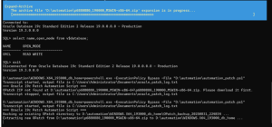 1.Set-ExecutionPolicy -Scope Process -ExecutionPolicy Bypass # --- CONFIGURATION --- $oracleHome = "D:\automation\WINDOWS.X64_193000_db_home" $patchDir = "D:\automation\p37532350_190000_MSWIN-x86-64 (2)\37532350" $opatchDir = "$oracleHome\OPatch" $opatchZip = "D:\automation\p6880880_190000_MSWIN-x86-64.zip" $logFile = "C:\Users\Administrator\Documents\oracle_patch_log.txt"