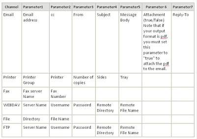 • Delivery parameters by channel. The delivery parameters by channel are defined in the following table: