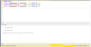 In our demo, two sessions attempted to update the same data in a different order. Each session held a lock that the other needed, creating a deadlock situation. SQL Server detected this condition and terminated one of the sessions as the deadlock victim.