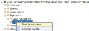 Create Local Subscription: