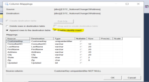 Click on Edit Mappings, enable Enable Identity Insert, and click OK.