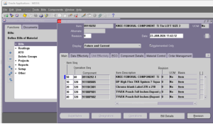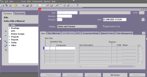 In Oracle Apps, navigate to the Bills of Material responsibility and open the Bills of Material window.