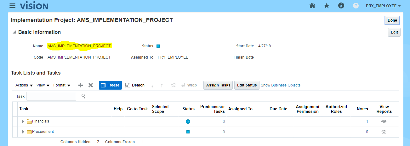 Step 4: below is the functional setup manager window; we could able to see all the offerings as provisioned and enabled