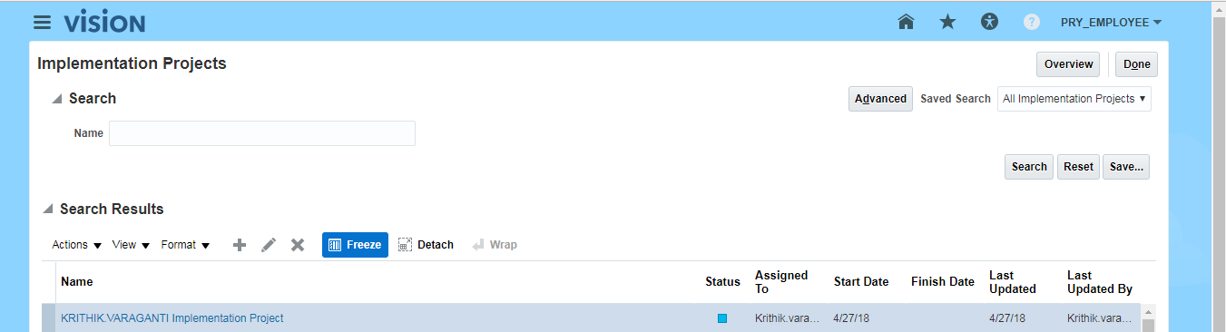Step 7: Click on the project name (hyperlink), it will open the project page