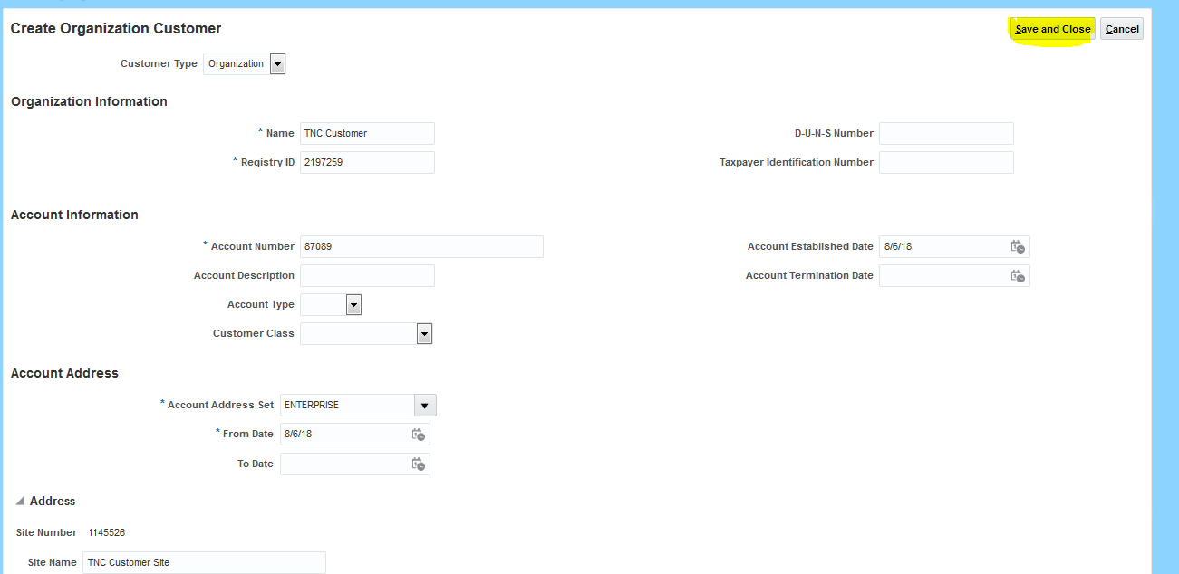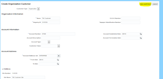 Step10: Below Customer Screen page we can enter the required information for creating the Customer Save and close