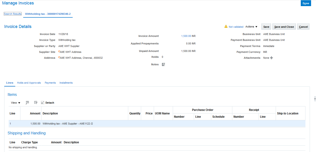 Step 27:Query the Withholding Tax invoice and Validate it.