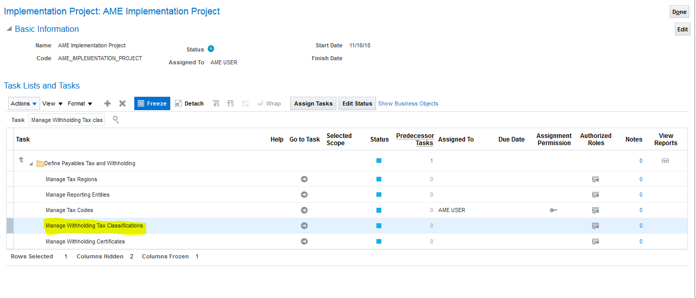 Go to Implementation project and search the task Manage Withholding Tax Classification and Go to Task
