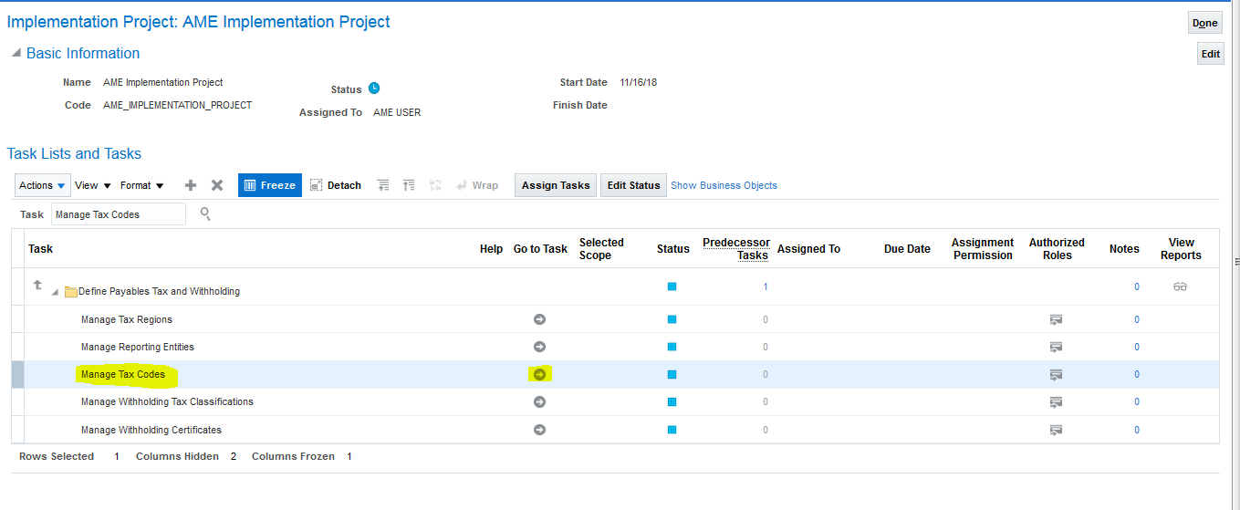 Manage Tax Reporting, and WHT Options click on Go to Task