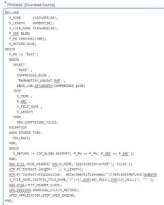 To download blob files (ZIP Files) from table in APEX using Oracle PL/SQL.