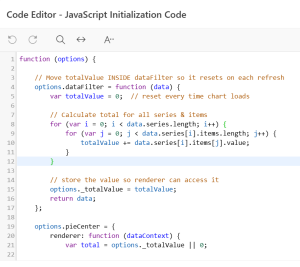 By leveraging JavaScript Initialization Code in Oracle APEX 19.2, we can effectively enhance the Donut chart by displaying a dynamic total value at its center. This solution: