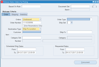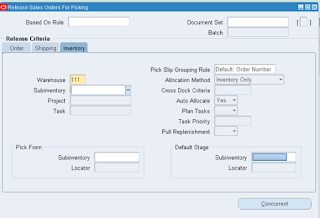 Navigation: Oracle Order Management > Shipping > Release Sales order > Release Sales order.