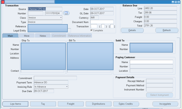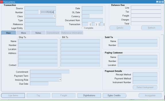Navigation: Oracle Receivables > Transactions > Transactions.