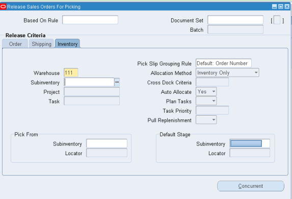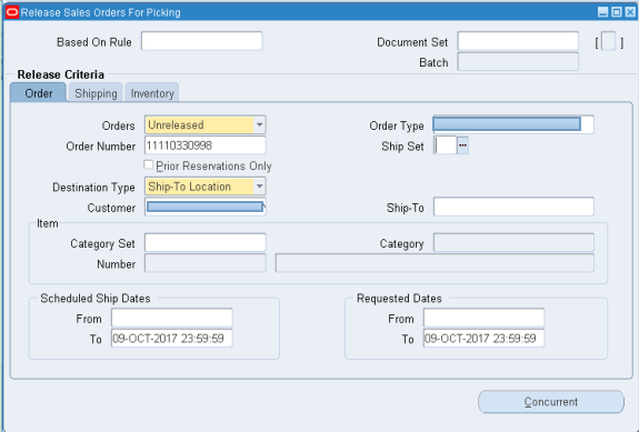 Navigation: Oracle Order Management > Shipping > Release Sales order > Release Sales order.