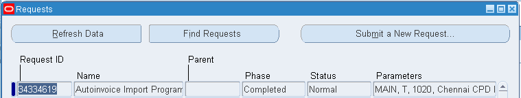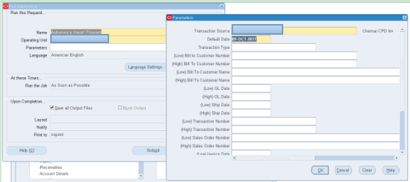 Navigation: Oracle Receivables > Interface > Autoinvoice.