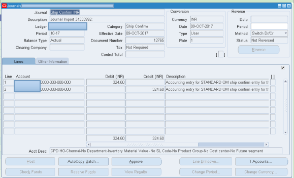 Go to India Local Inventory Responsibility and click on View Material Transactions.