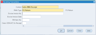 Click on DFF, Select the India RMA Receipt