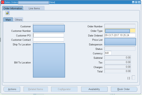 Step1.Navigation: Oracle Order Management > Orders, Returns > Sales Order.