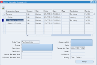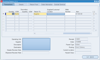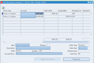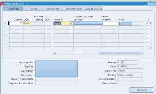 Step 1:Navigation> Oracle Purchasing > Receiving > Returns