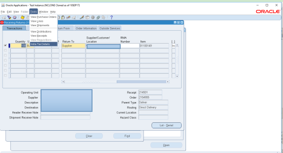 This post detailed how GST will work while doing the return to vendor(RTV) on purchasing Responsibility in Oracle EBS