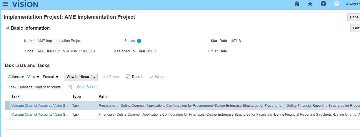 Step9: In the below screen click Manage Chart of Accounts Value Sets.