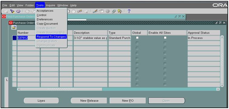 If either the Buyer’s Worklist is not able to be reached or the needed notification is not present, the following steps can then be taken to process the outstanding change: