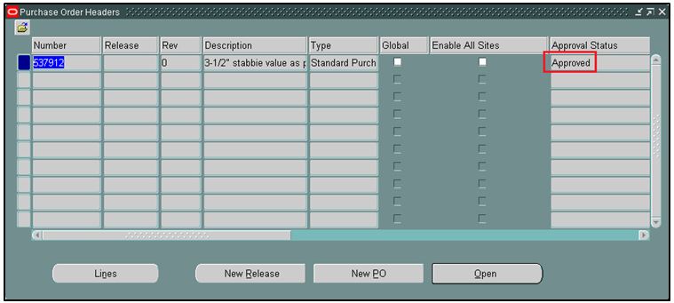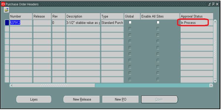 Requisitions are created using either from the Core Purchasing or Internet Procurement responsibilities. Then the requisitions will be converted into Purchase Orders using either Buyers Work Centre form or Autocreate form and will be submitted for approval. During the PO Approval process, if the Requestor requested any changes in the Requisition through iProcurement, then the related PO workflow will be removed. So, the Purchase Order will get stuck in the system with “In Process” status.