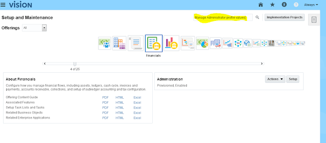 Steup4: below is the functional setup manager window, we could able to see all the offerings as provisioned and enabled.