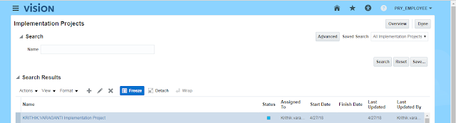 Step7: Click on the project name (hyperlink), it will open the project page.