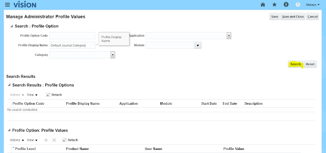 Step8: FSM Home Page search Manage Administrator Profile Values.