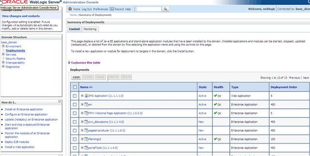 – Open Weblogic Console with port 7051 given while Configuring Admin server