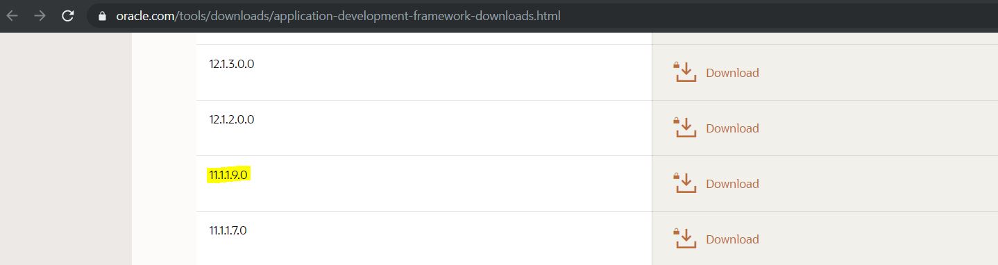 2. Download and Install ADF Runtime 11.1.1.9.0