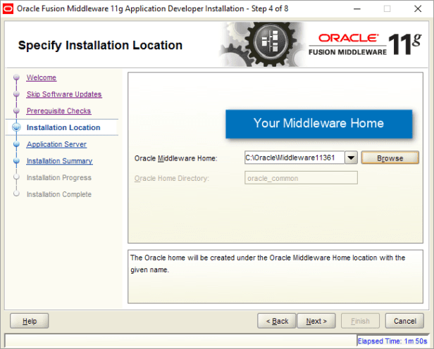 In the Next screen, Select the Middleware Home Directory and click on Next to continue .