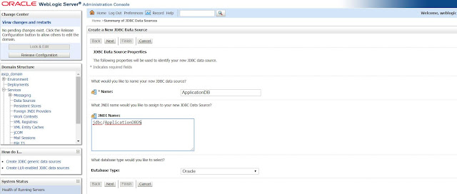 Click on ascp_domain->Services->Data Sources -> New -> Generic Data Sources