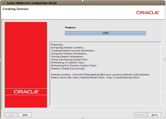 The Weblogic 10.3.6 Installation will start and you can see the progress in the next screen . Click on next once 100% is completed .