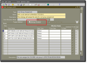 - Identify the strategy where the cost group rule is assigned.