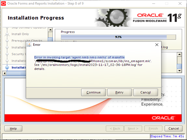 Oracle Forms and Reports 11.1.2.2.0 Installation: “invoking target agent” Error