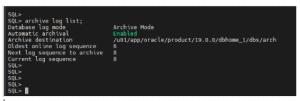 SQL> ARCHIVE LOG LIST;