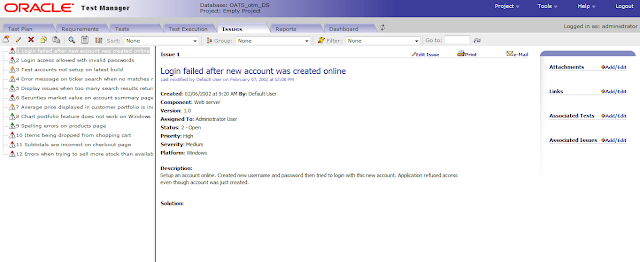Oracle Test Manager is an easy to use tool that allows you to organize and manage
