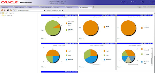 Oracle Test Manager comes with a standard set of reports that can be viewed as either