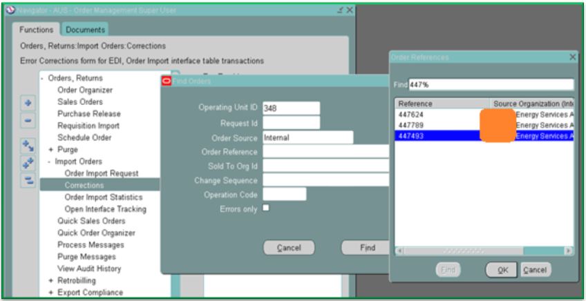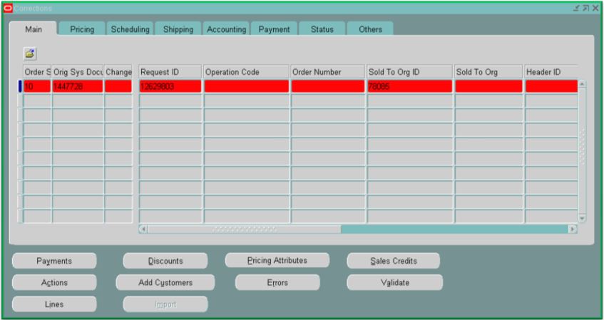 Open the Order Import Corrections form for the problematic order based on the “Order Source”.