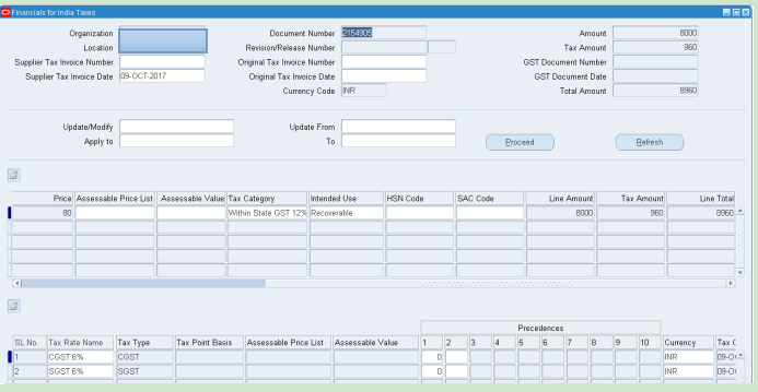 This post detailed how the GST will apply in procure to pay process in Oracle EBS R12
