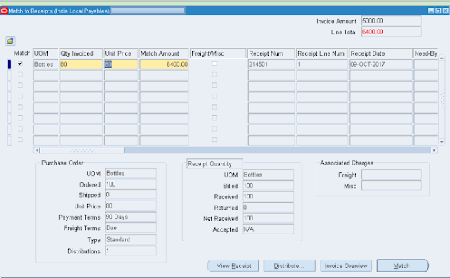 Navigation: Oracle Purchasing > Receiving > Receipts