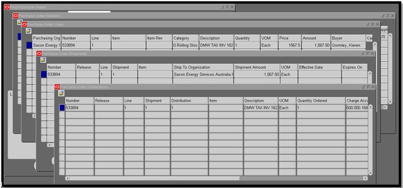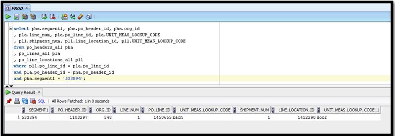 But, in the front end, the UOM code is same “Each” in PO Lines and Shipments regions for that PO.