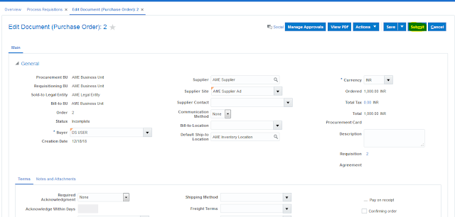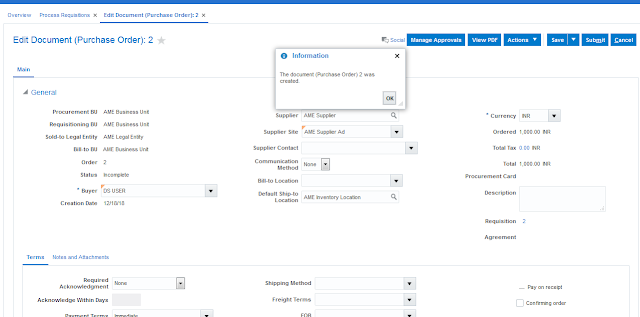 This post detailed what are the steps should follow to create the purchase requisition and how it get approved in Fusion Application