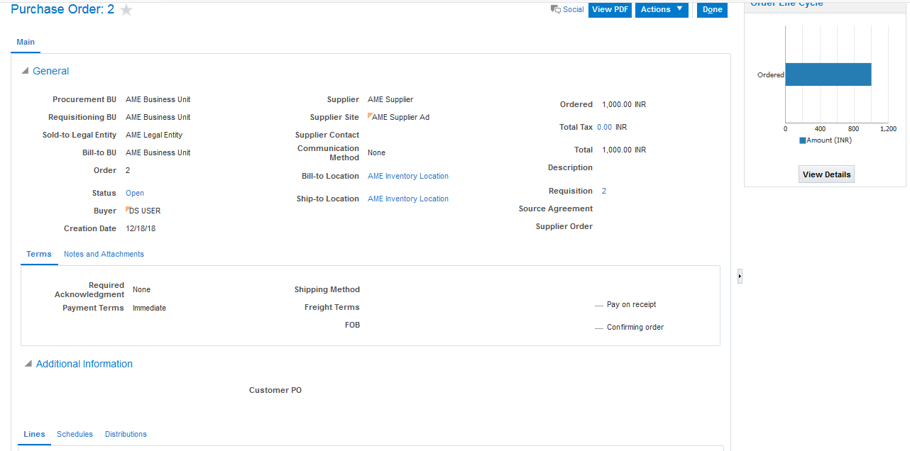To Make this Requisition has PO Click on Purchasing Orders work area