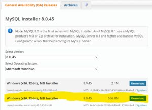 - Choose the MySQL Installer for Windows appropriate for your system.