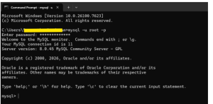 - If you see the MySQL prompt (mysql>), the installation was successful