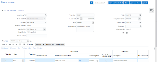 - Create the dummy Invoice 20000